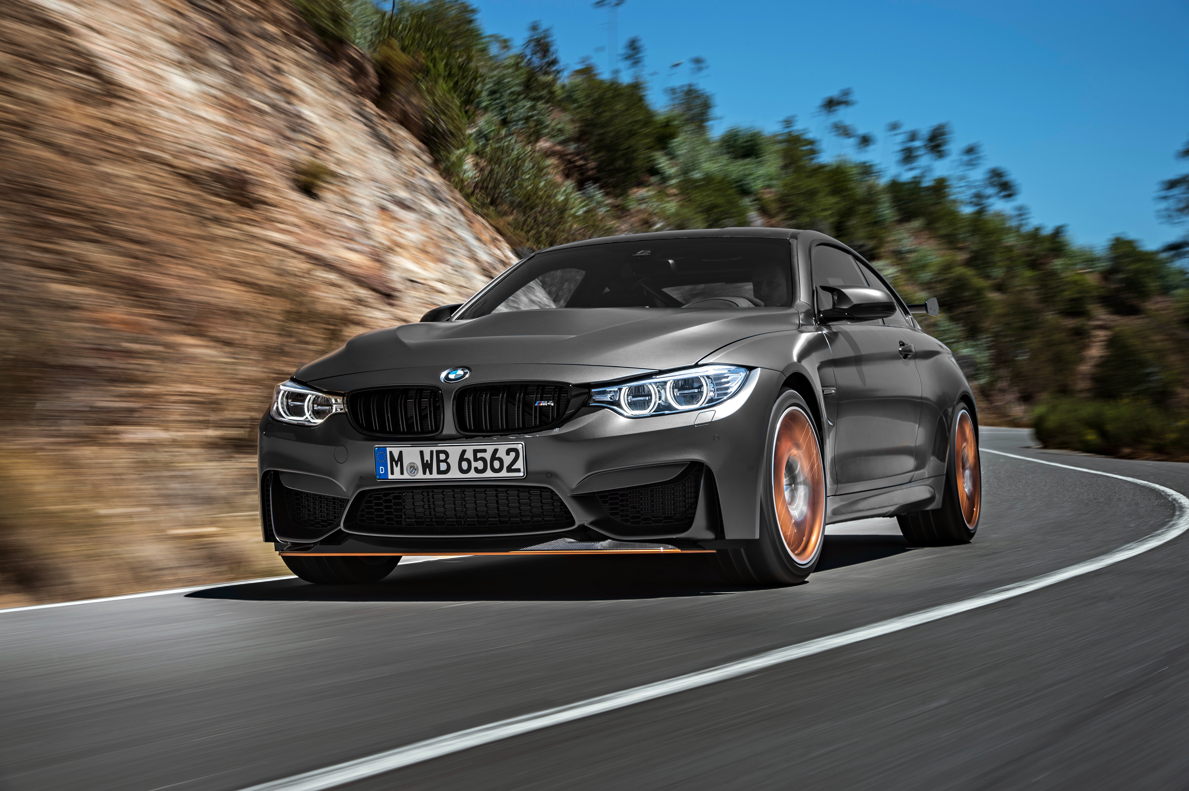 Серебристый стильный автомобиль BMW M4 на трассе - 4096x2726