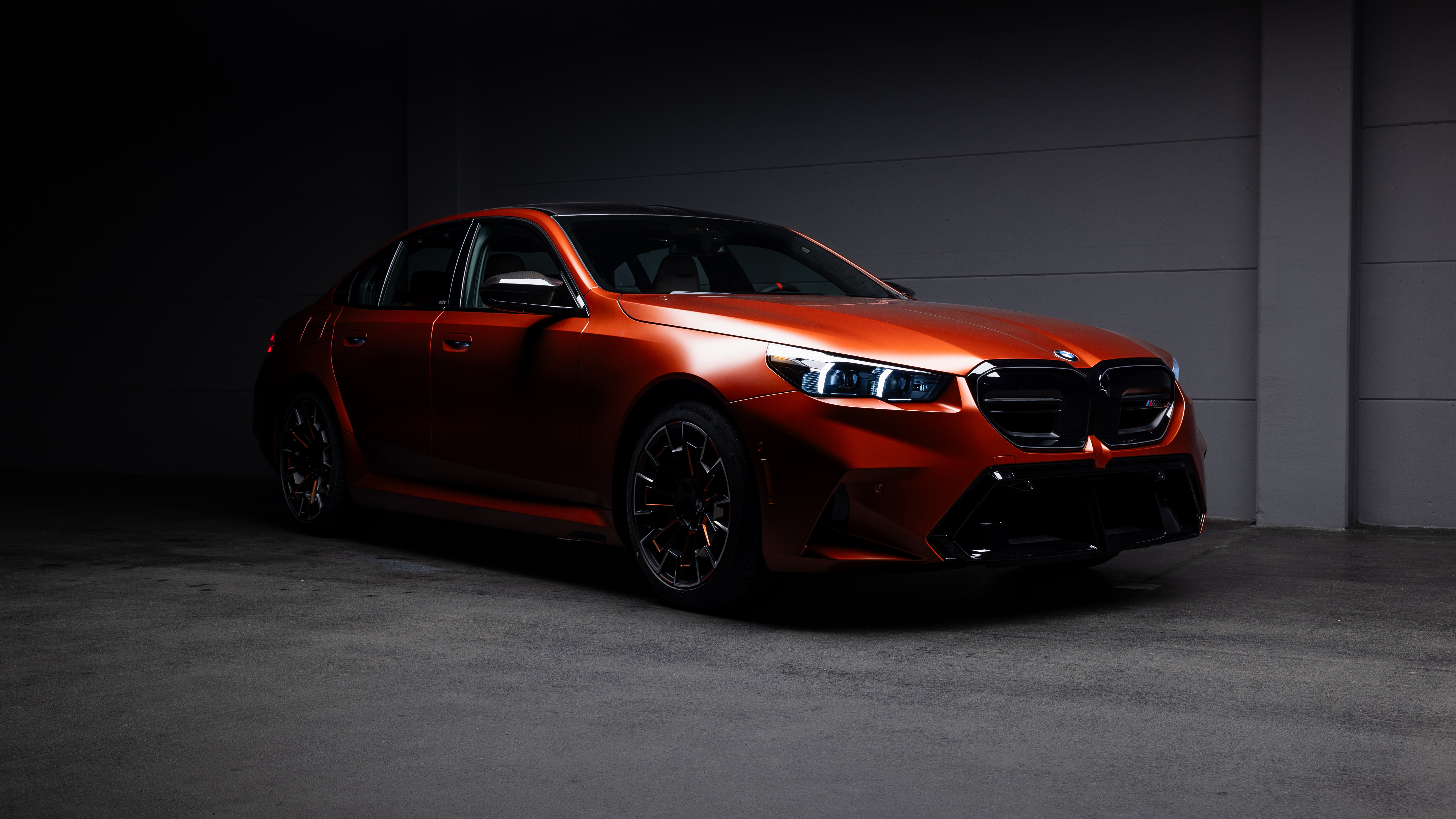 Красный автомобиль BMW M5 2025 года в гараже - 5120x2880