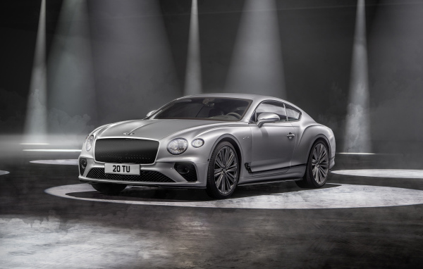 Дорогой автомобиль Bentley Continental GT Speed 2021 года в свете софитов Обои для рабочего стола 600x382