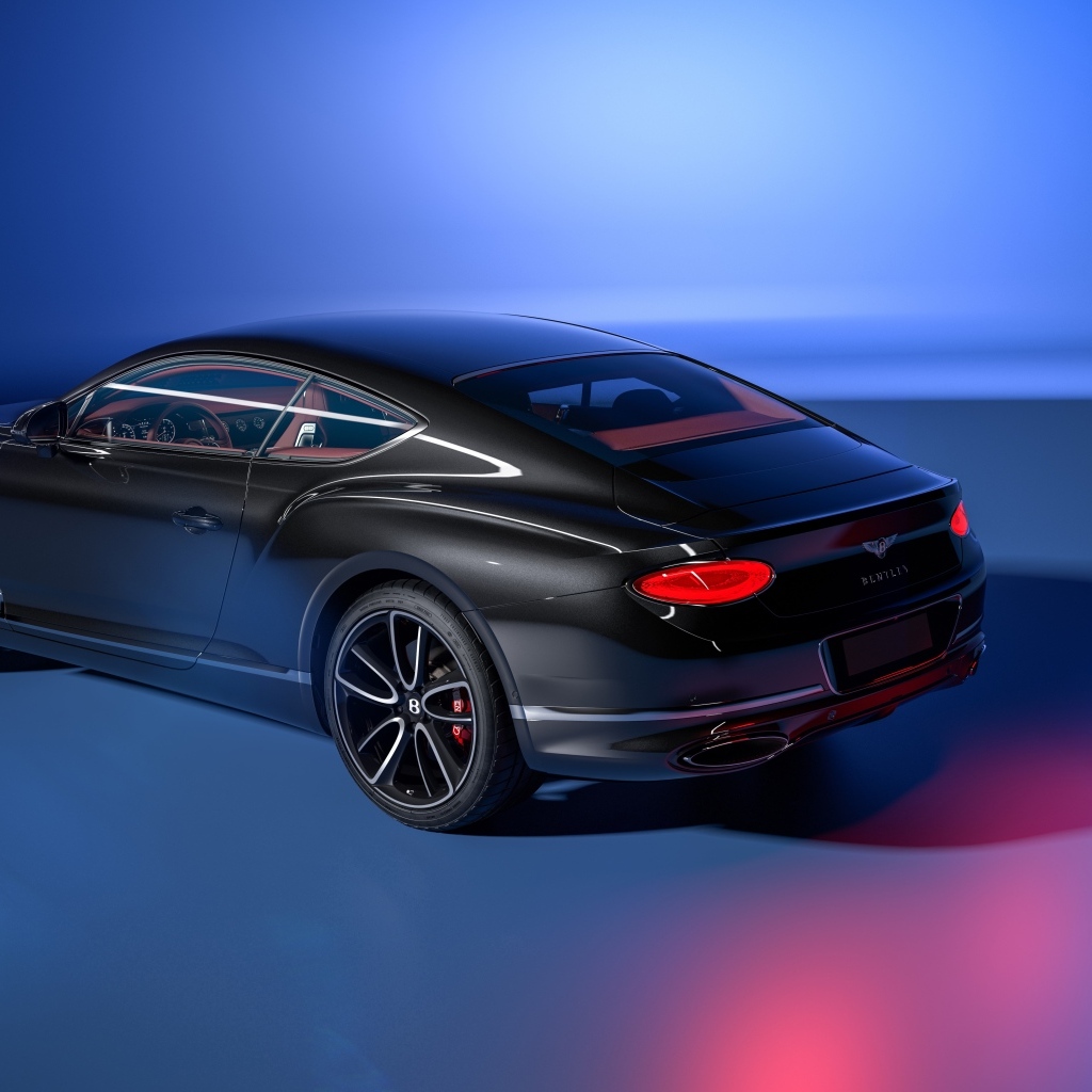 Вид сбоку на автомобиль Bentley Continental GT на синем фоне Обои для рабочего стола 1024x1024