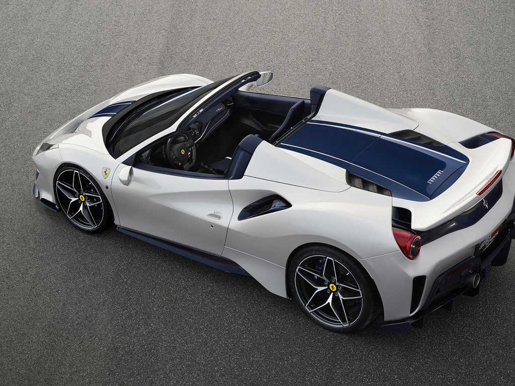 Быстрый автомобиль Ferrari 488 Pista Spider, 2019 вид сзади