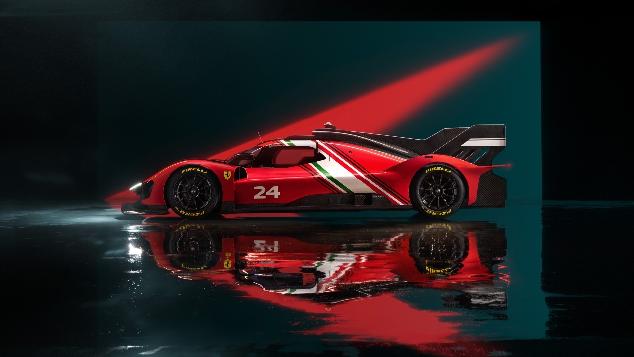 Вид сбоку на автомобиль Ferrari 499P Modificata - 7680x4320