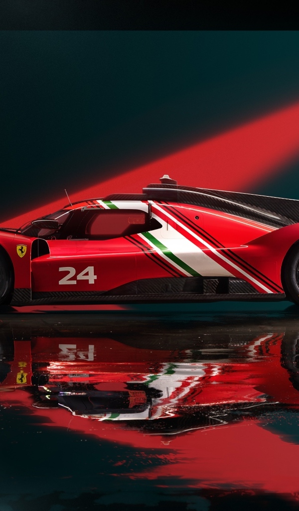 Вид сбоку на автомобиль Ferrari 499P Modificata Обои для рабочего стола 600x1024