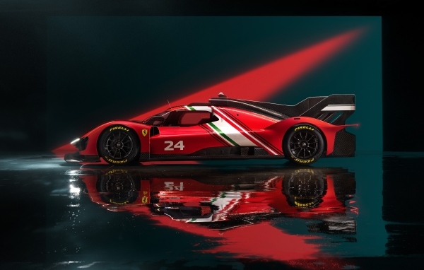 Вид сбоку на автомобиль Ferrari 499P Modificata Обои для рабочего стола 600x382