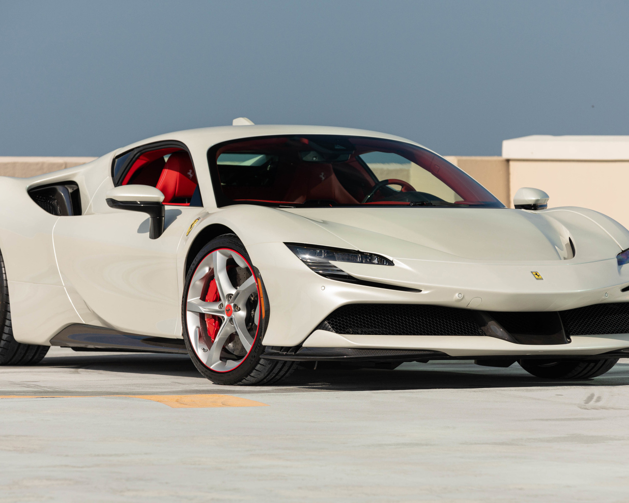 Быстрый белый автомобиль Ferrari SF90 Stradale - 5120x2880