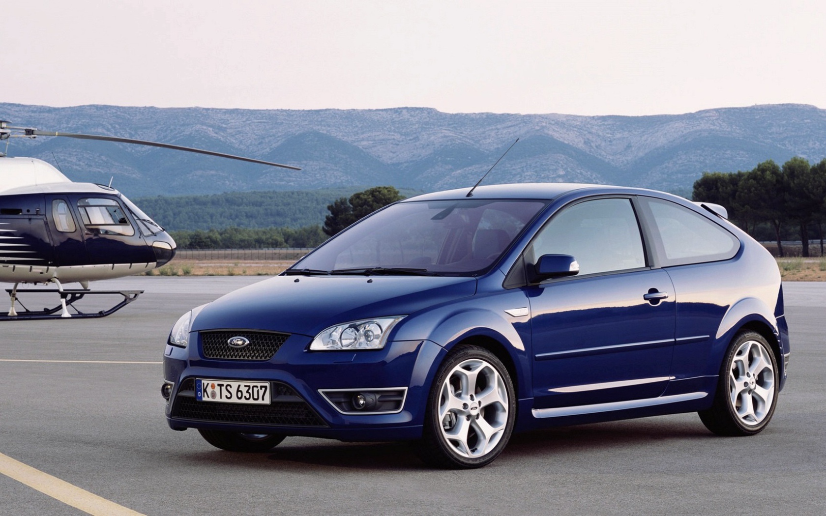 Голубой Форд на вертолетной площадке Обои для рабочего стола 1680x1050