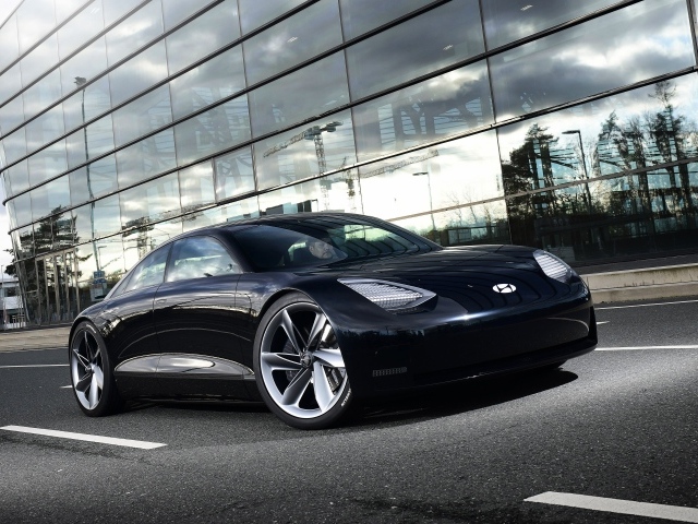 Обои: Черный автомобиль Hyundai Prophecy 2020 года у стеклянного здания