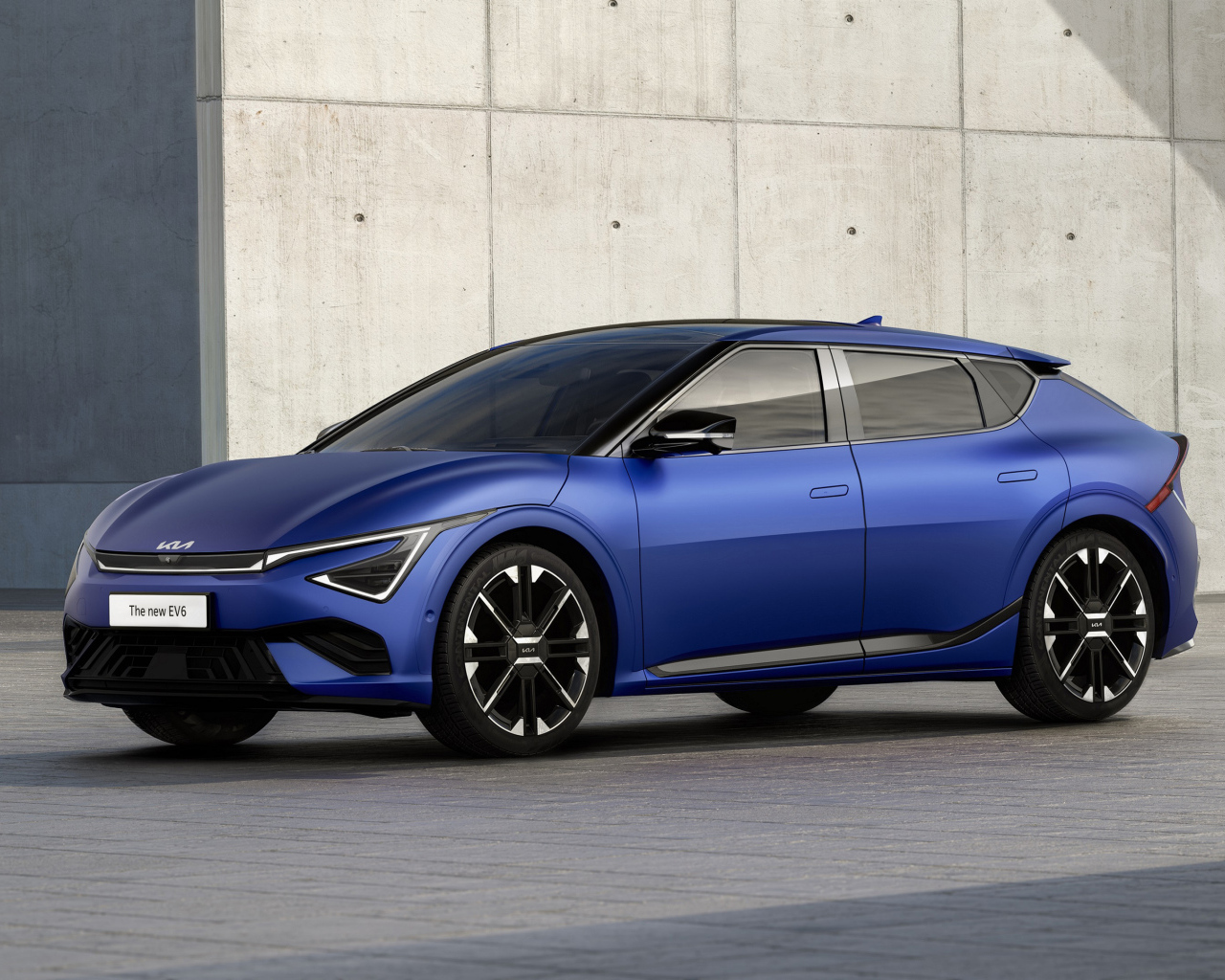 Синий автомобиль Kia EV6 GT-Line 2024 года