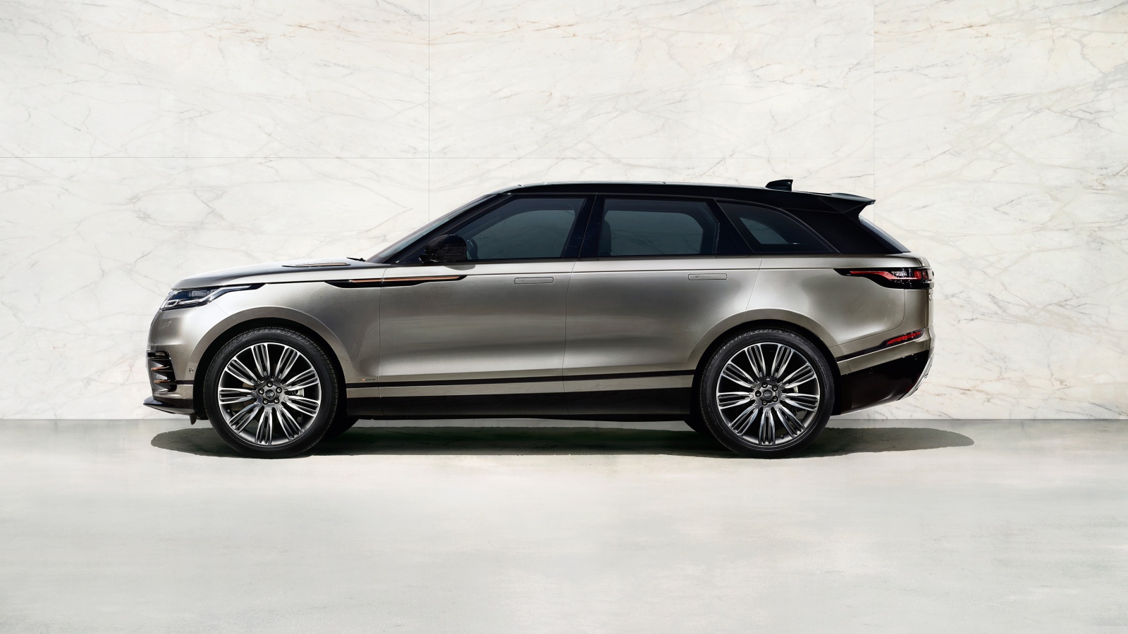 Серебристый внедорожник Range Rover вид сбоку Обои для рабочего стола 1600x900