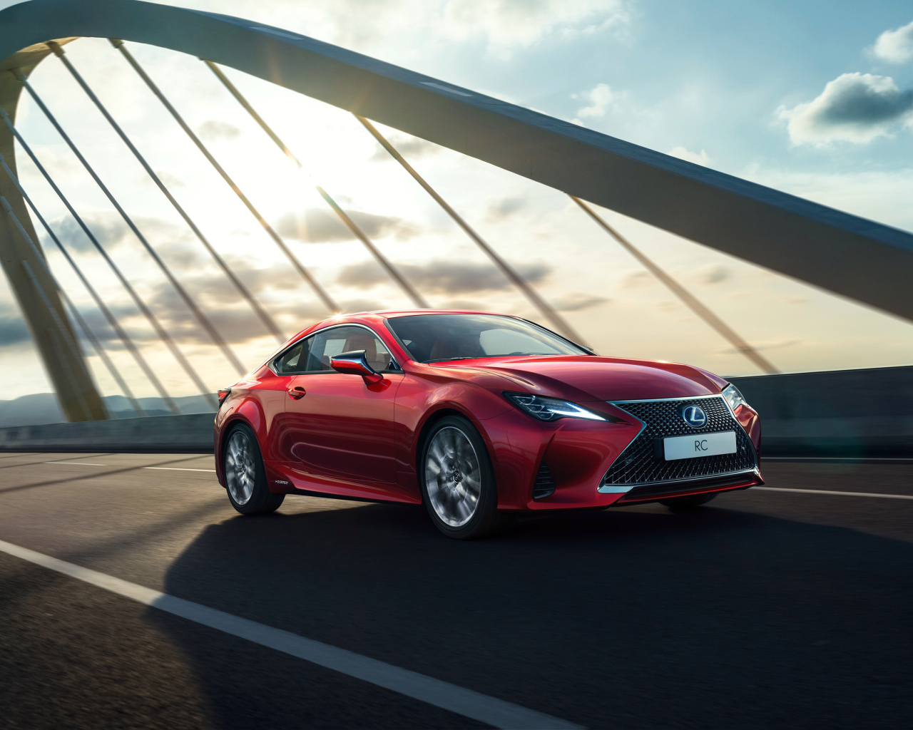Красный автомобиль Lexus RC, 2018 года на мосту Обои для рабочего стола 1280x1024
