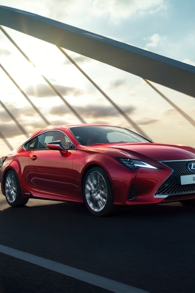 Красный автомобиль Lexus RC, 2018 года на мосту Обои для рабочего стола 640x960