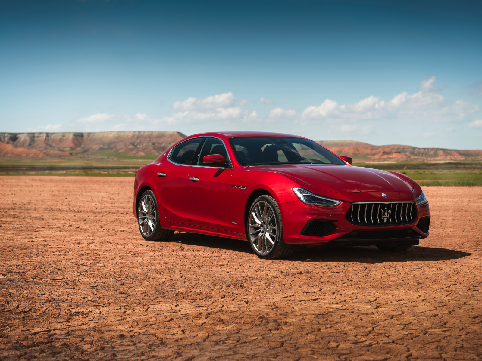 Красный автомобиль Maserati Ghibli на фоне голубого неба - 4096x2764