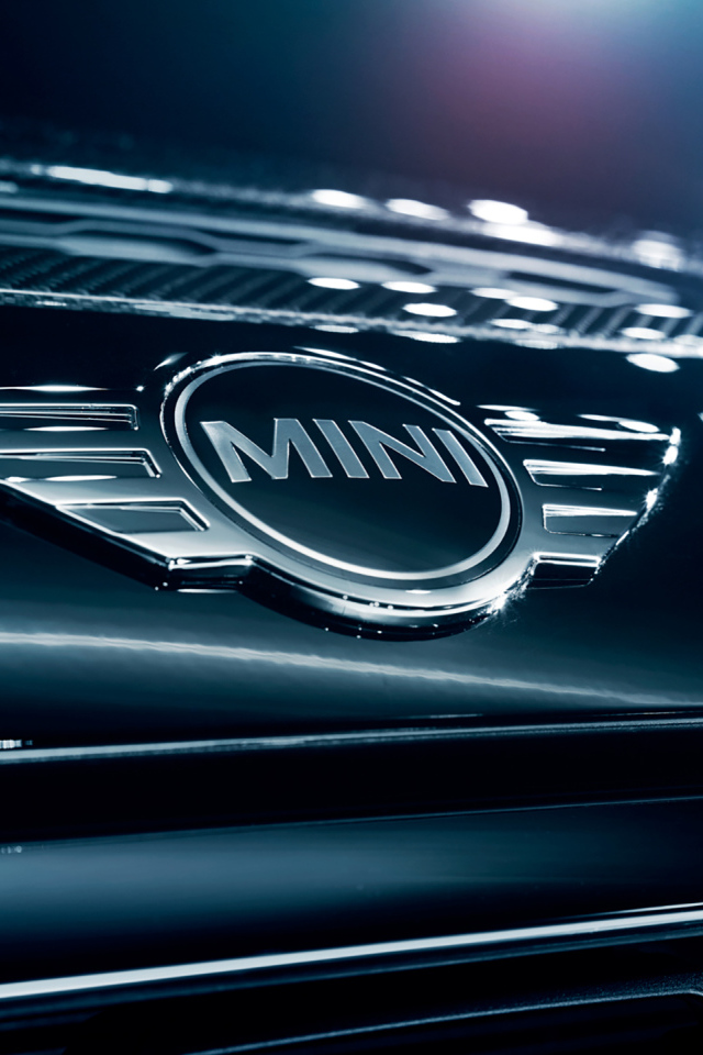 Логотип автомобиля MINI LOGO крупным планом Обои для рабочего стола 640x960