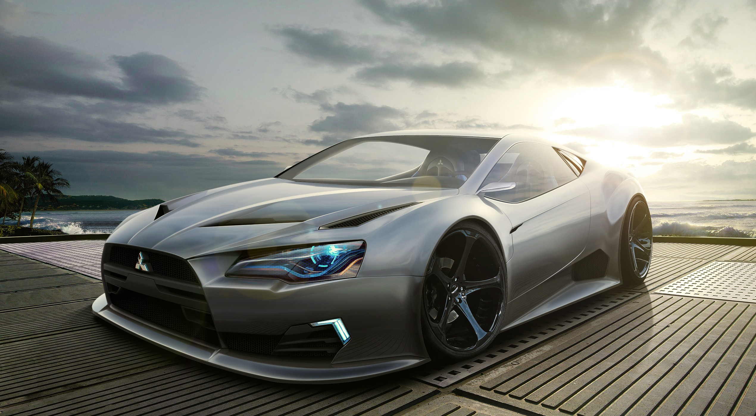 Обои: Серебристый автомобиль Mitsubishi в лучах солнца
