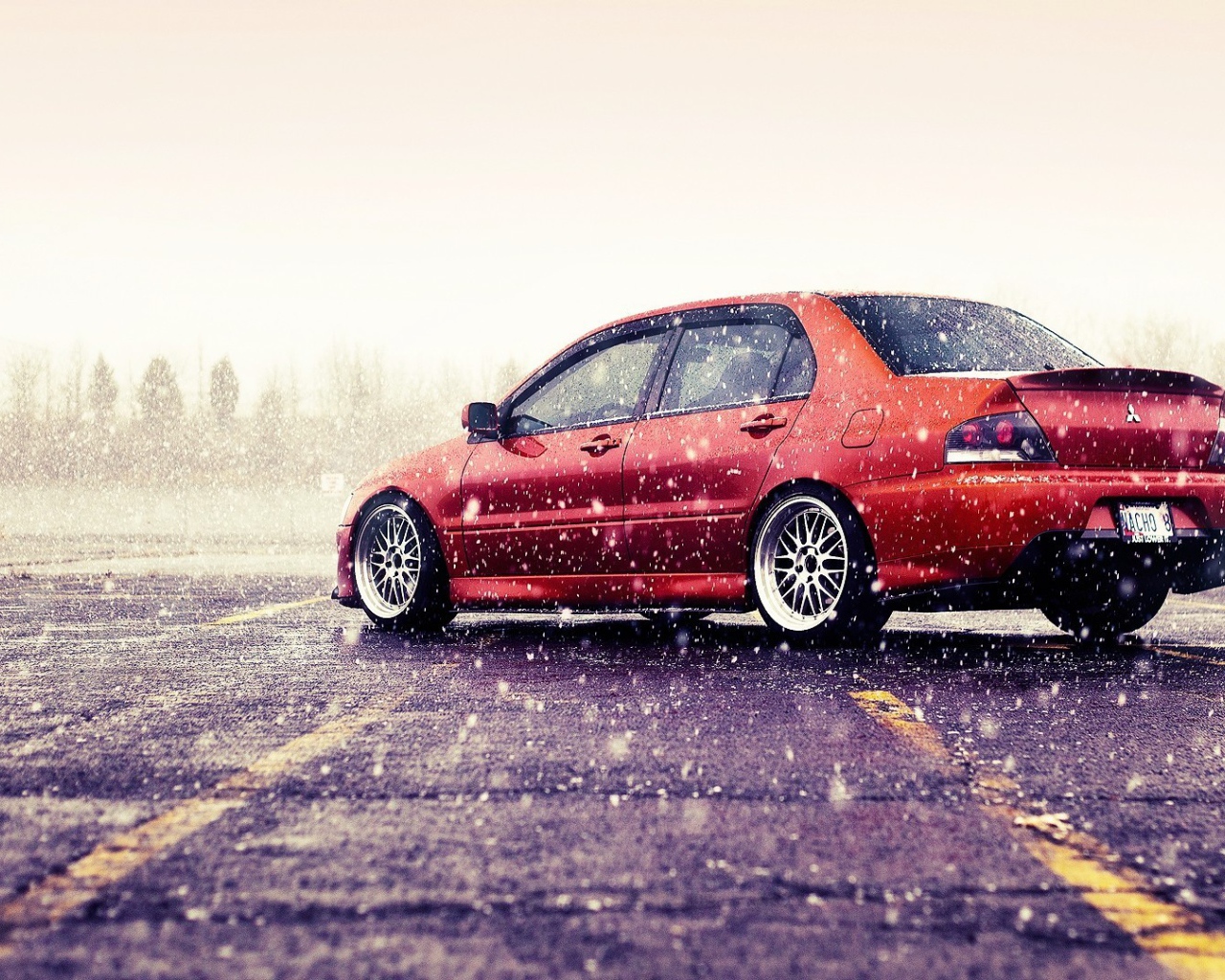 Мицубиши Лансер под дождем Обои для рабочего стола 1280x1024