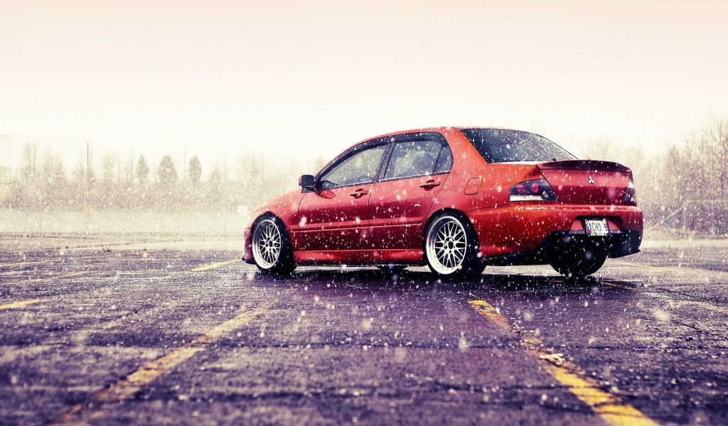 Мицубиши Лансер под дождем Обои для рабочего стола 1024x600