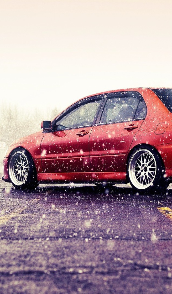 Мицубиши Лансер под дождем Обои для рабочего стола 600x1024