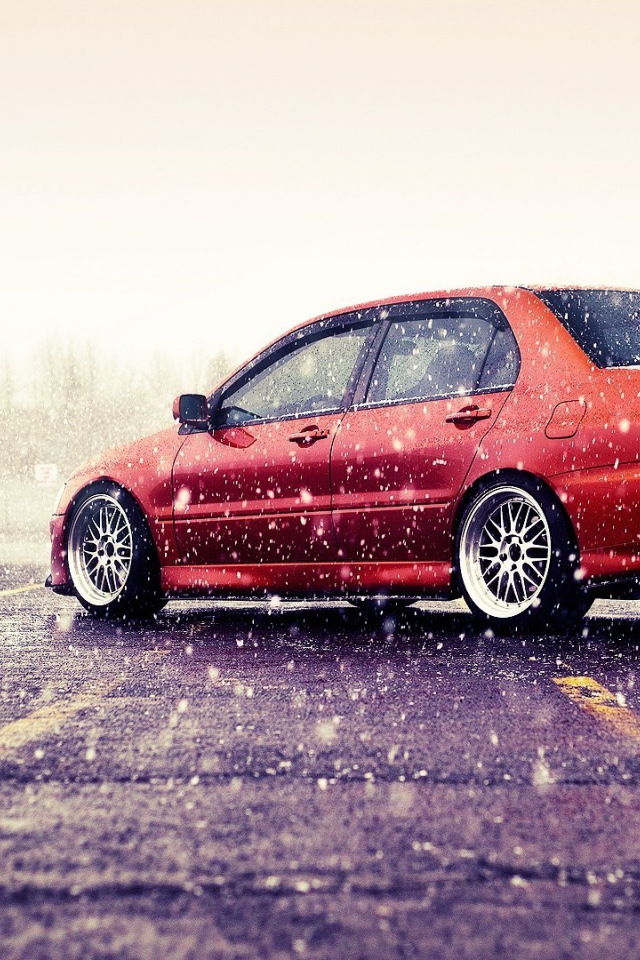 Мицубиши Лансер под дождем Обои для рабочего стола 640x960