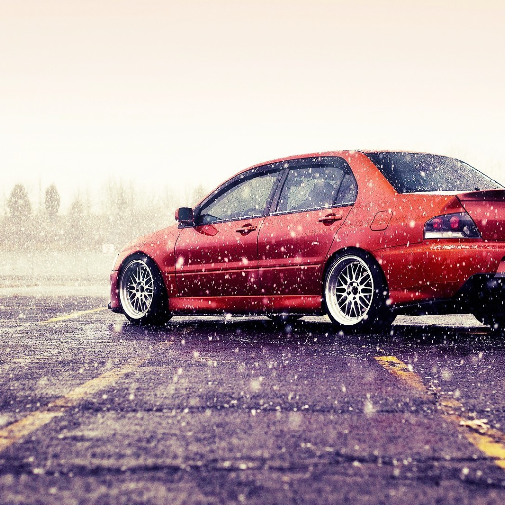 Мицубиши Лансер под дождем Обои для рабочего стола 1024x1024