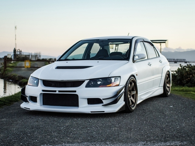 Обои: Белый спортивный Mitsubishi Lancer Evolution IX
