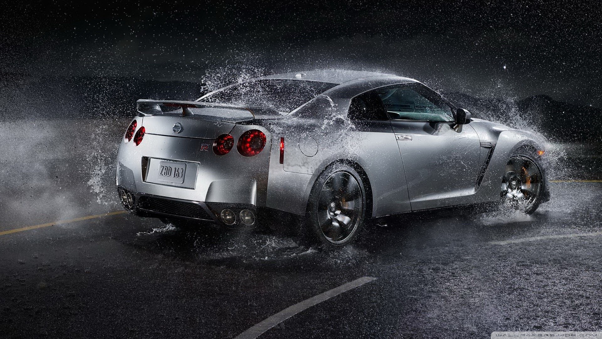 Серебристый Nissan GT-R под дождем - 1920x1080