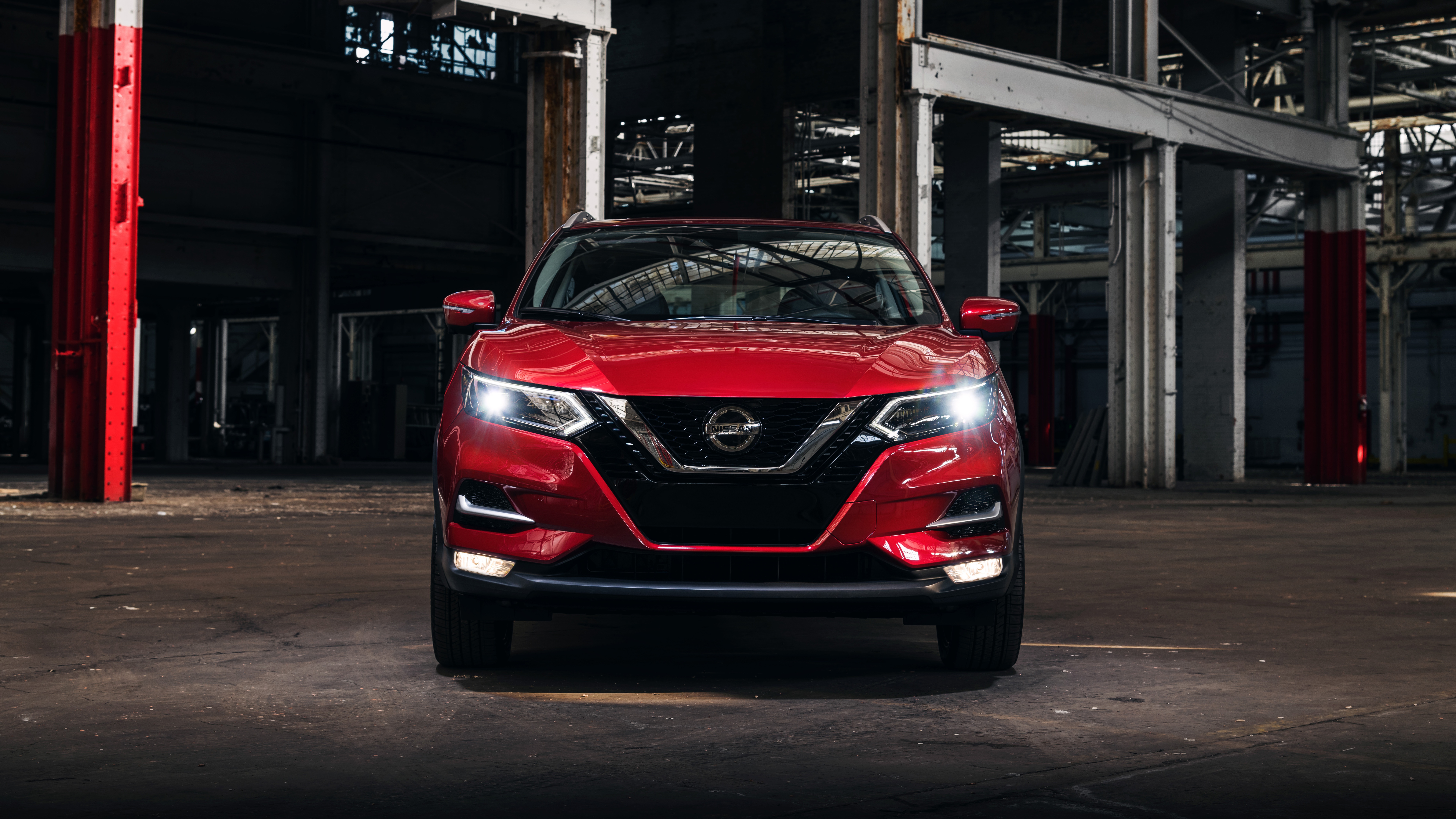 Обои: Красный автомобиль Nissan Rogue вид спереди