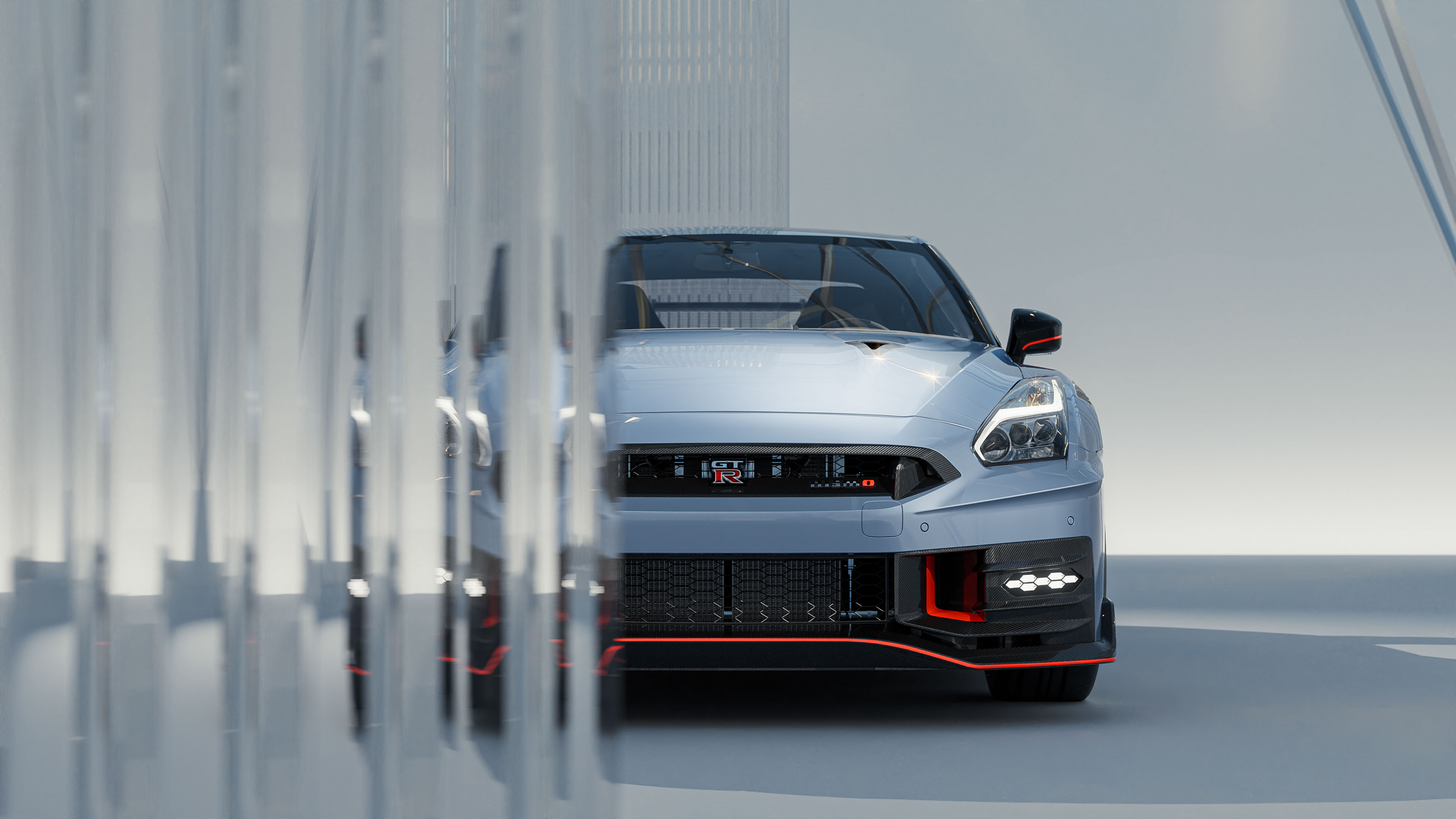 Серебристый автомобиль Nissan GT-R Nismo Front