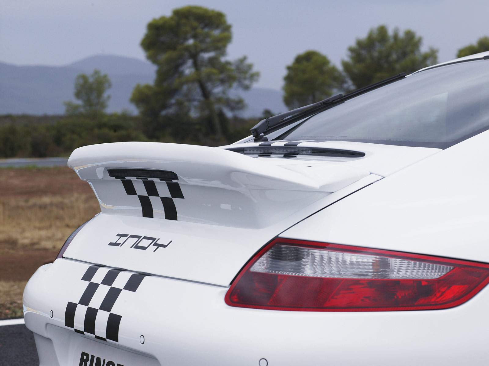 Серый спортивный Porsche 911 Turbo S Stinger GTR 3 2023 года вид сзади