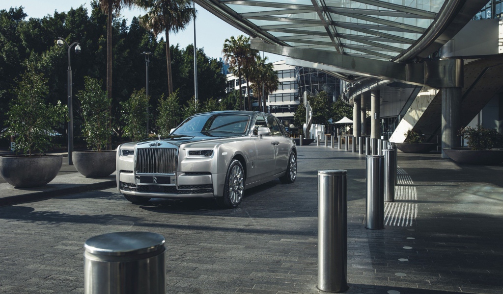 Серебристый стильный Rolls Royce Phantom 2018 Обои для рабочего стола 1024x600