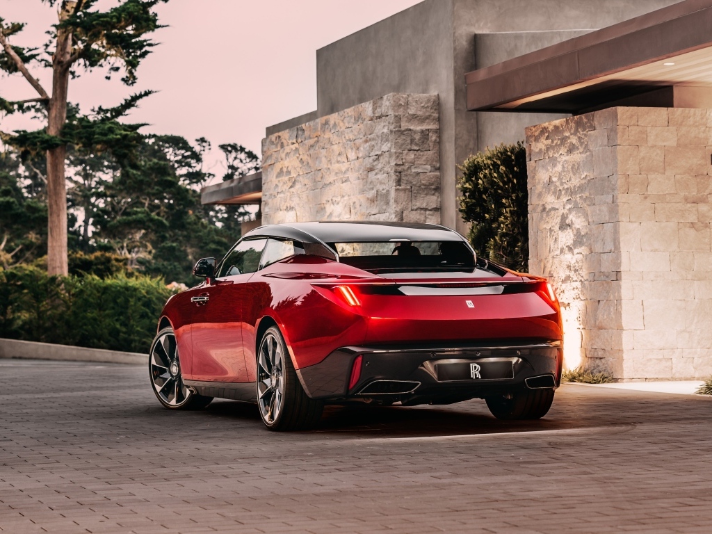 Красный автомобиль Rolls-Royce La Rose Noire Droptail вид сзади - 5120x2880