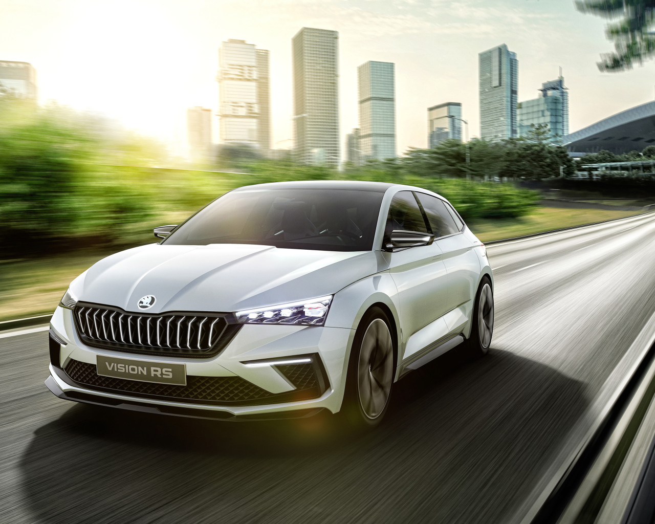 Автомобиль Skoda Vision RS 2018 года на трассе Обои для рабочего стола 1280x1024