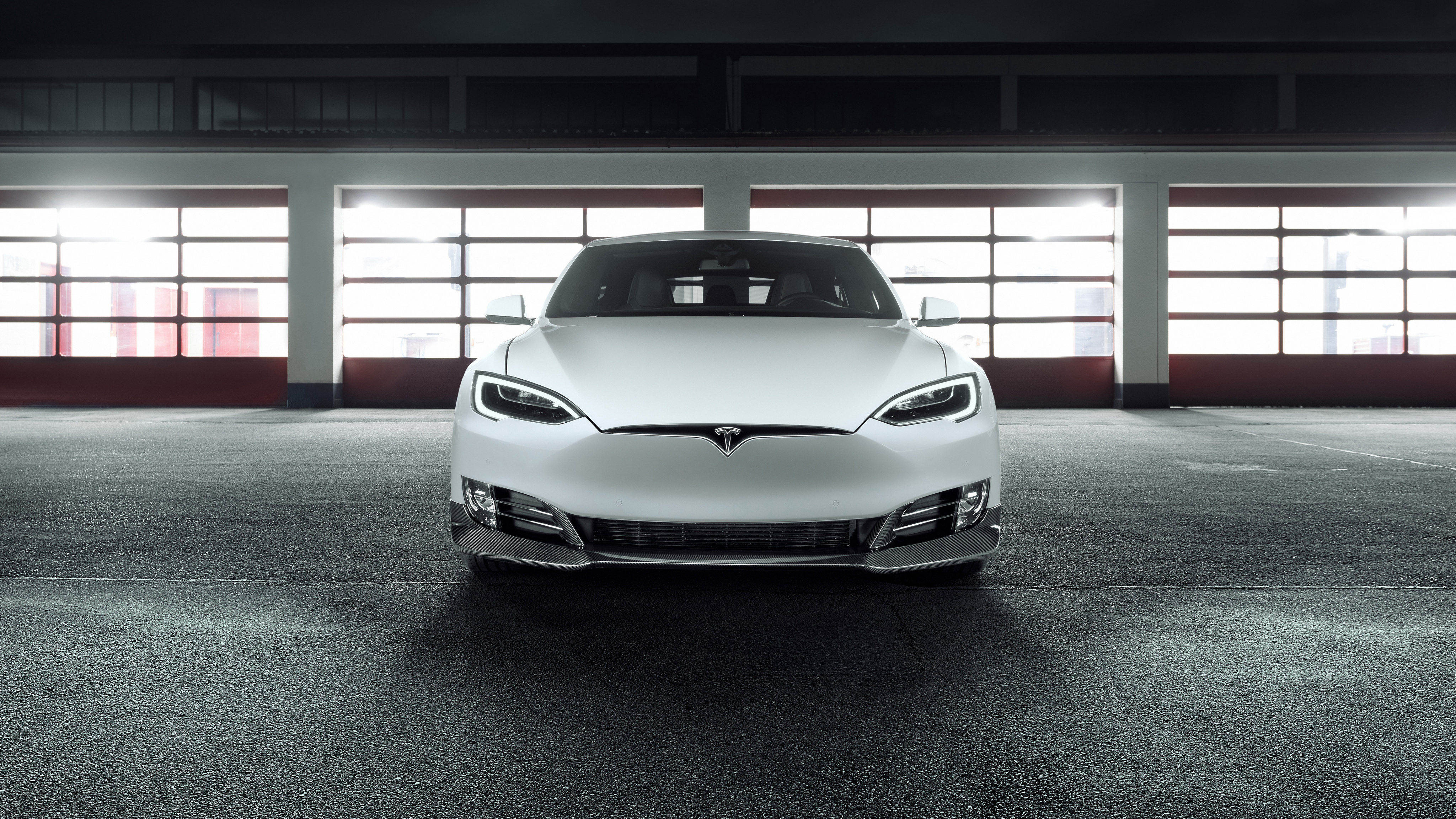 Обои: Белый электромобиль Tesla Model S, вид спереди