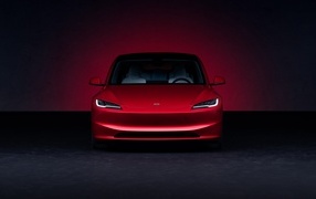 Обои: Электрокар Tesla Model 3 на фоне небоскребов