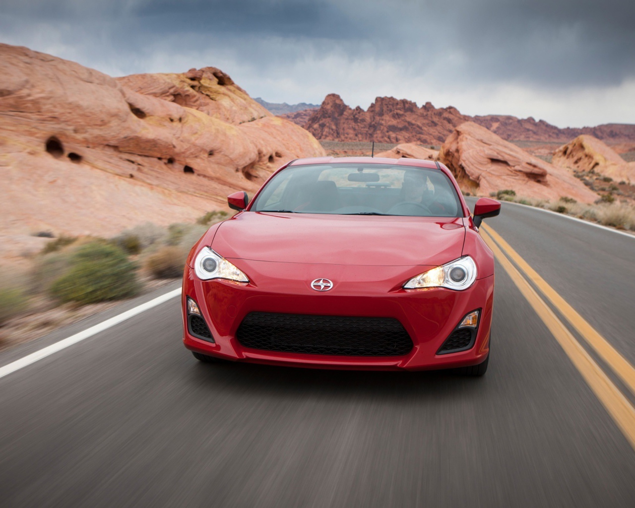 Красный автомобиль Toyota GT86 на трассе Обои для рабочего стола 1280x1024