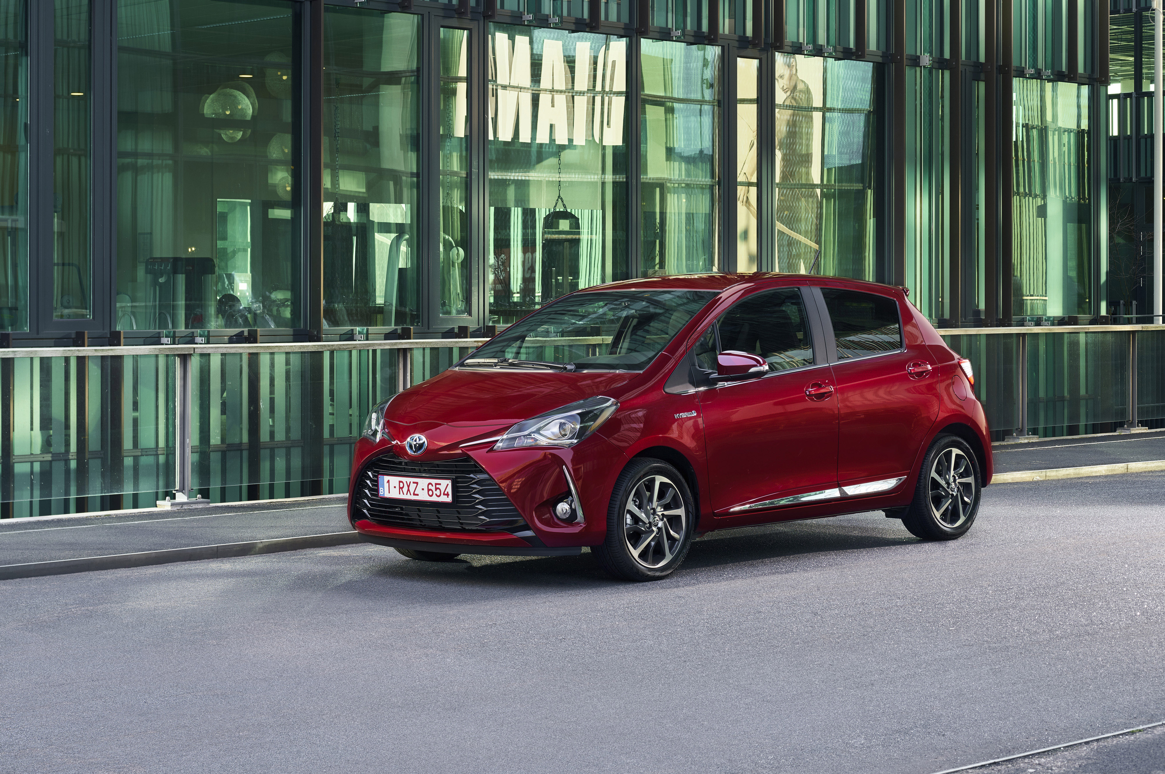 Красный автомобиль Toyota Yaris Hybrid, 2017