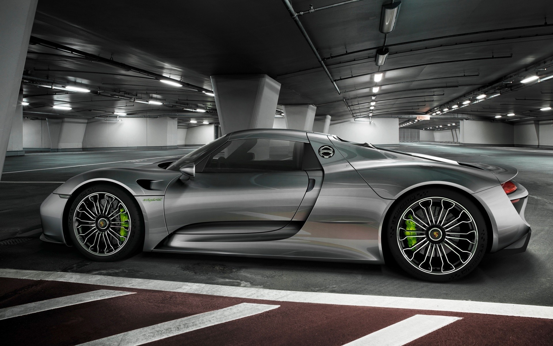 Роскошный серебрянный автомобиль на подземной парковке - 1920x1200