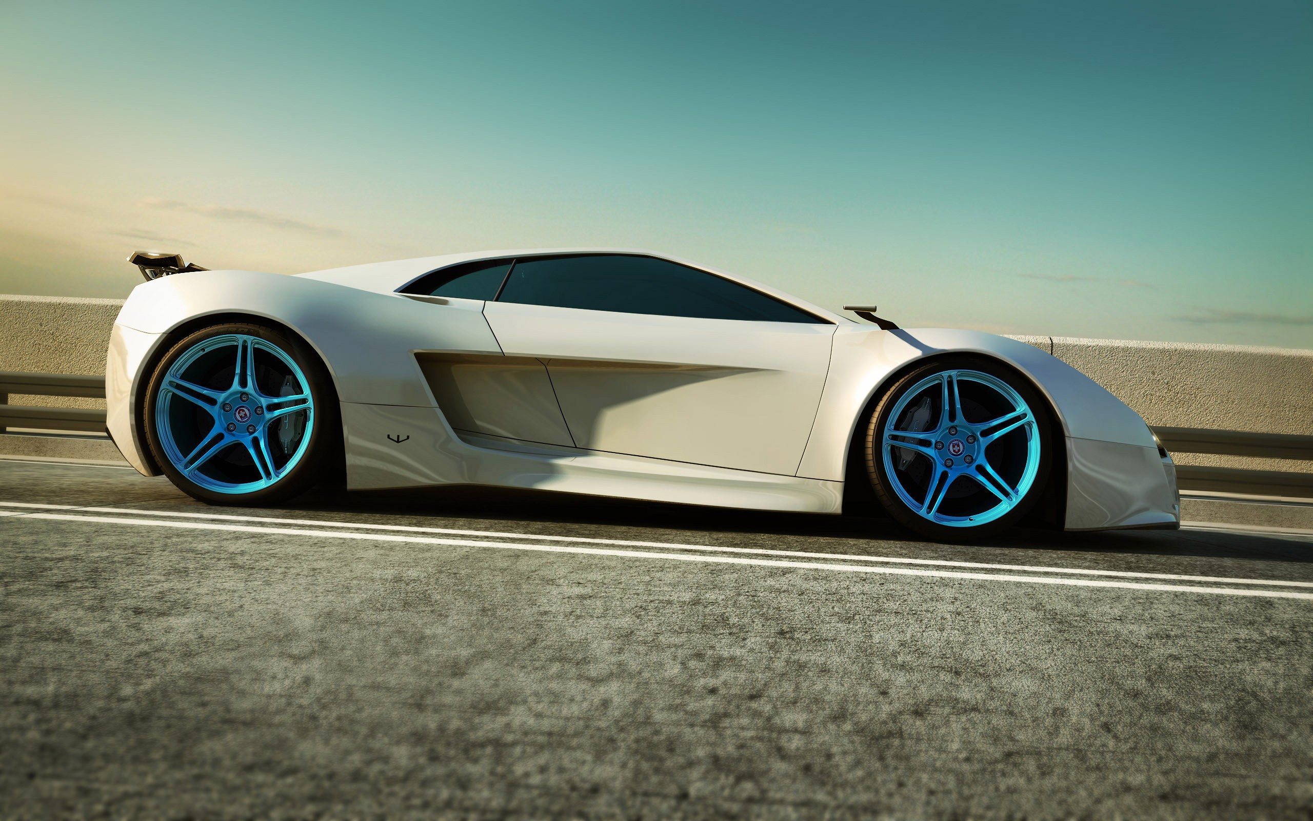 Белый спортивный автомобиль с голубыми дисками - 2560x1600