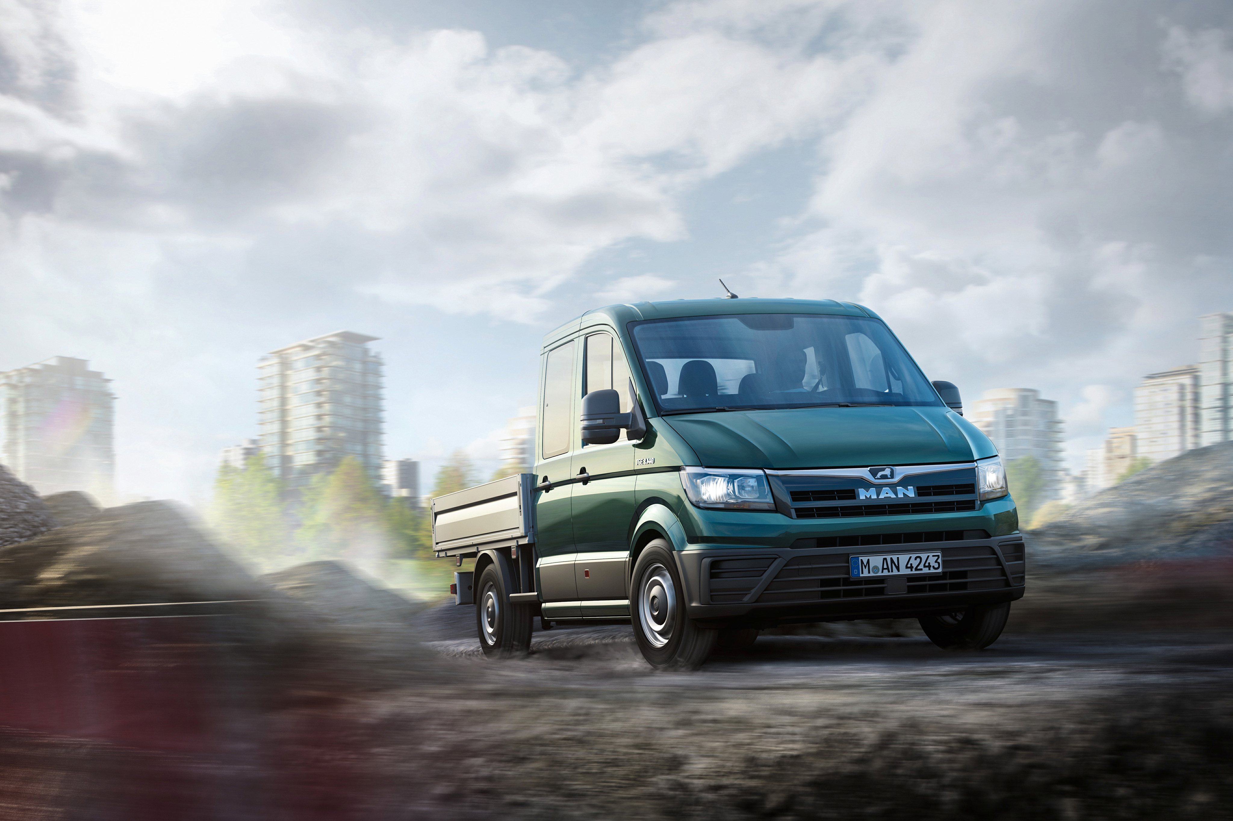 Зеленый пикап MAN TGE 3.140 Crew Cab, 2017 - 4096x2730