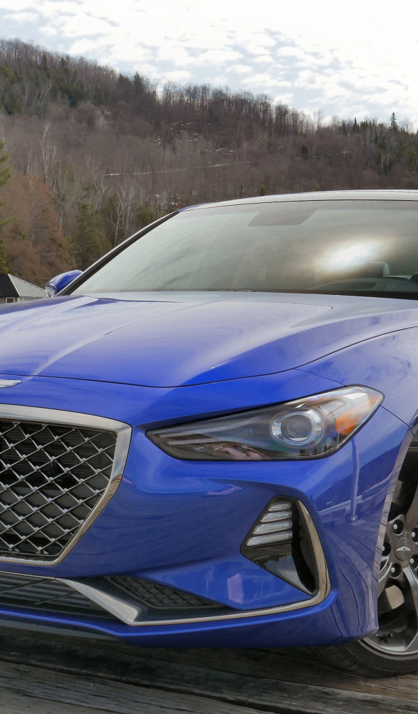 Синий автомобиль Genesis G70, 2019 Обои для рабочего стола 600x1024