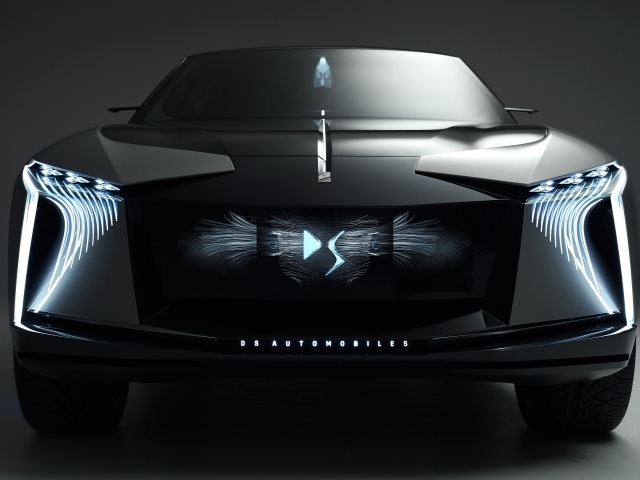 Черный автомобиль DS Aero Sport Lounge 2020 года на сером фоне вид спереди - 5120x2880