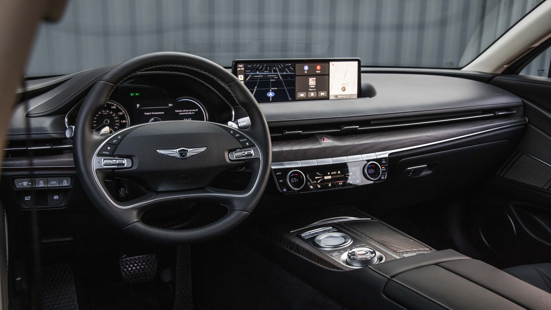 Черный салон автомобиля Genesis G80, 2021 года - 5120x2880