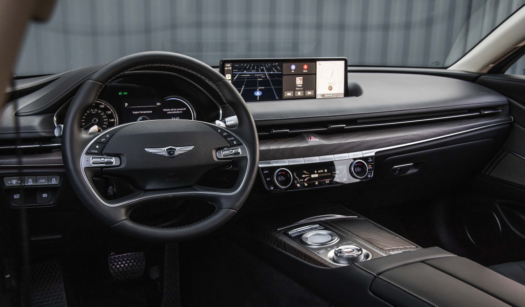 Черный салон автомобиля Genesis G80, 2021 года Обои для рабочего стола 1024x600