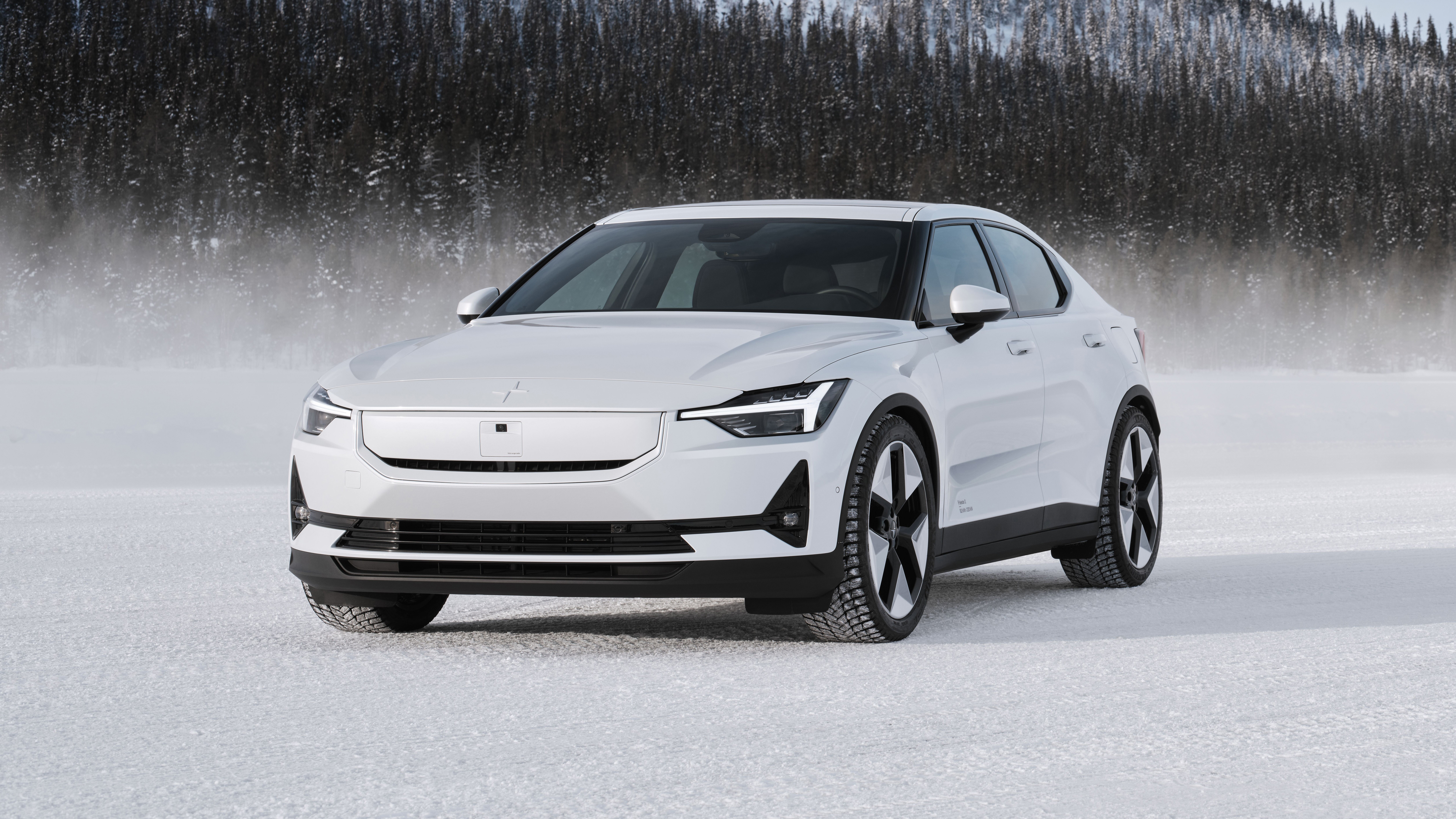 Белый автомобиль Polestar 2 на снегу - 7680x4320