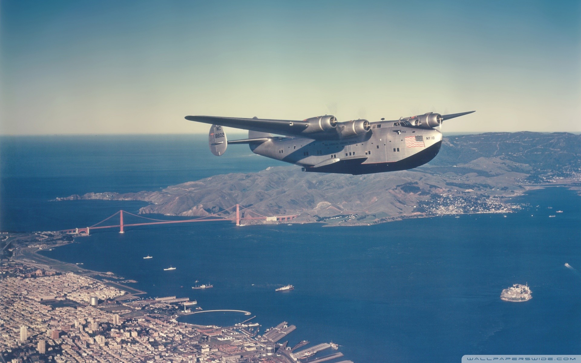 Военно транспортный самолет над Сан-Франциско - 1920x1200