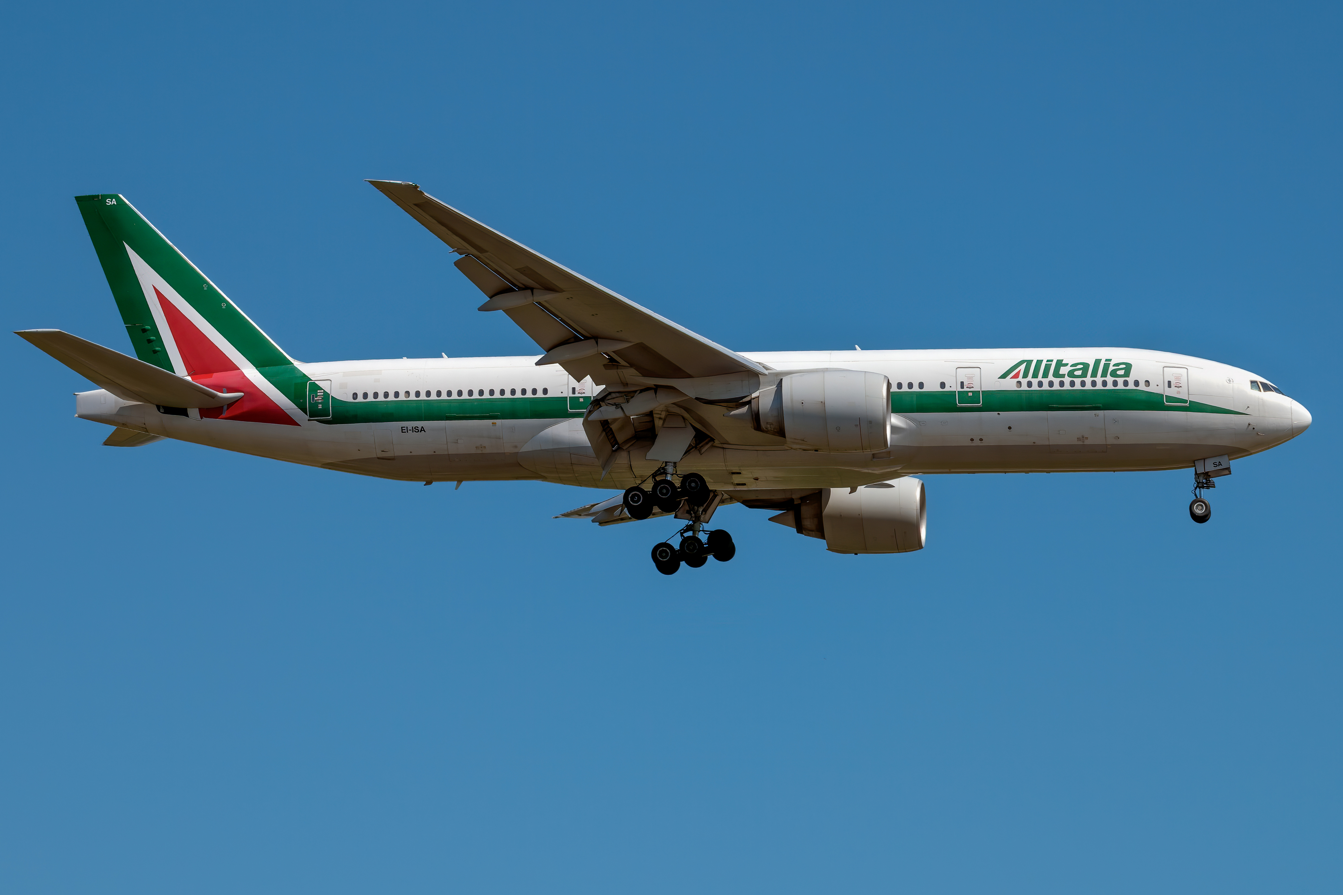 Пассажирский самолет авиакомпании Alitalia в голубом небе - 4562x3041