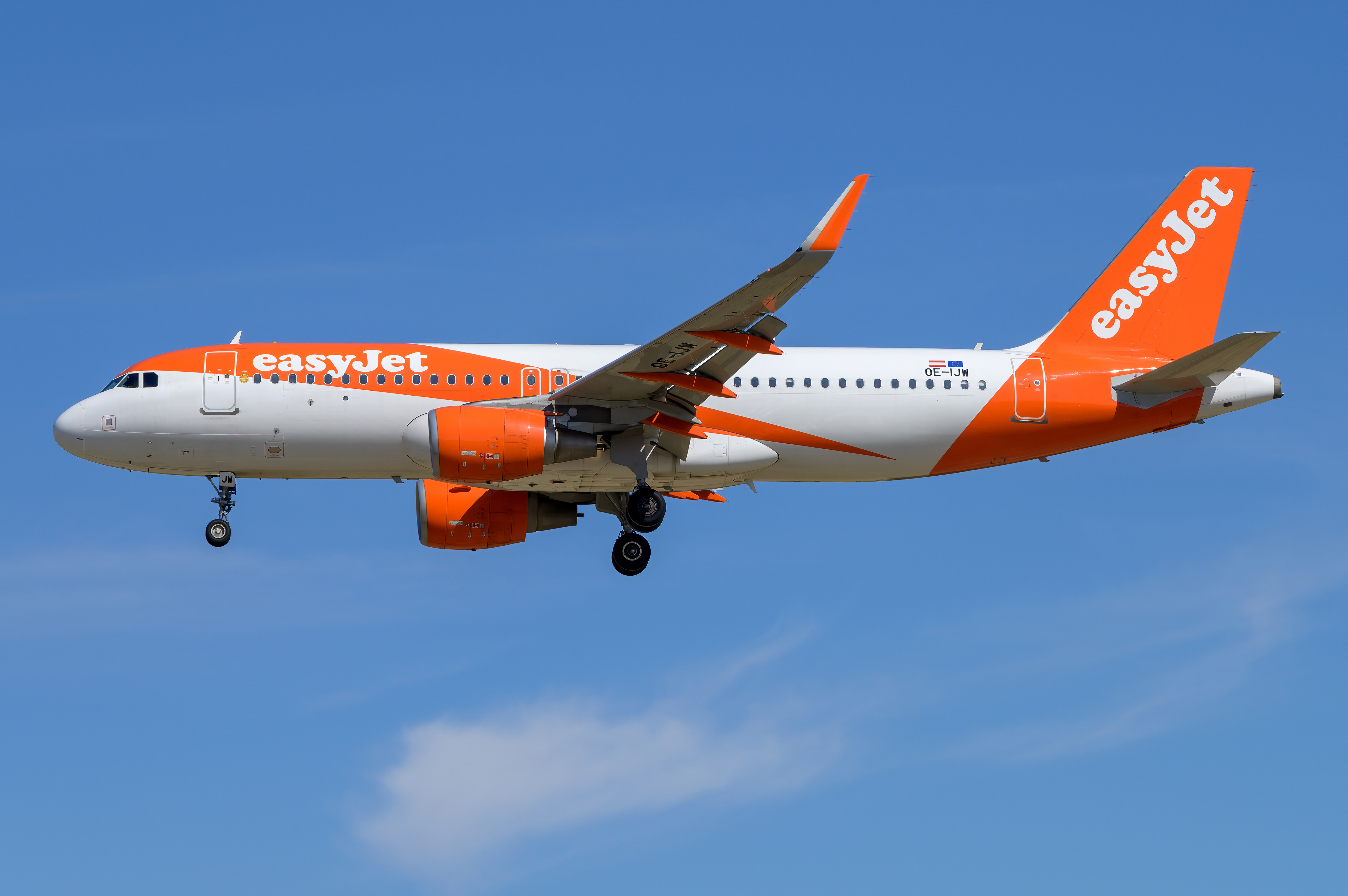 Пассажирский Airbus A320-200S авиакомпании EasyJet Europe в море - 4562x3035
