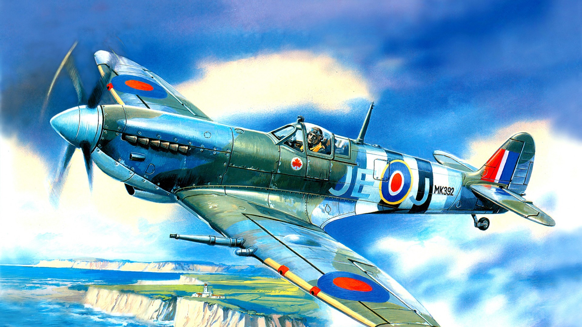Самолет над заливом - 1920x1080
