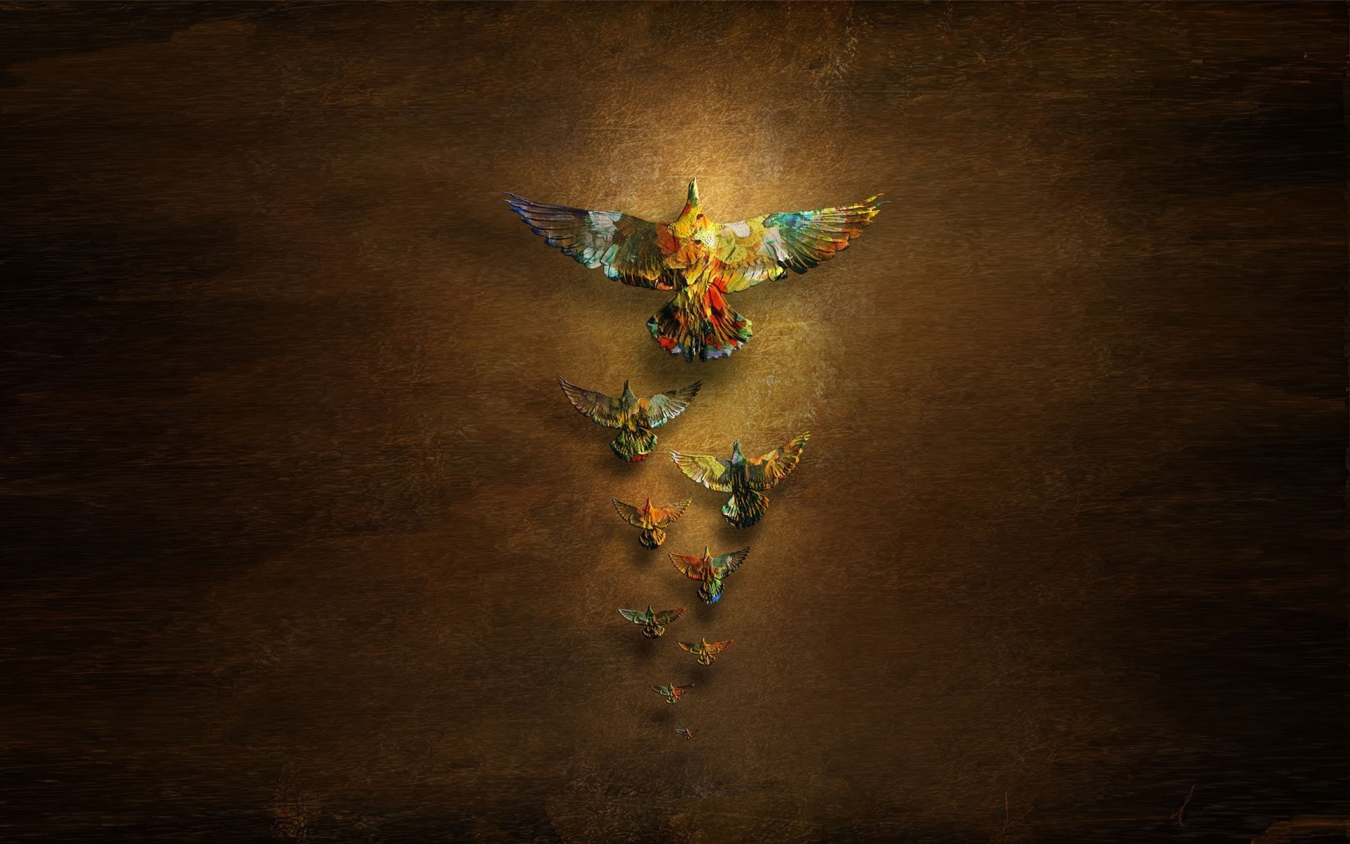 Радужные птицы на коричневом фоне - 1920x1200