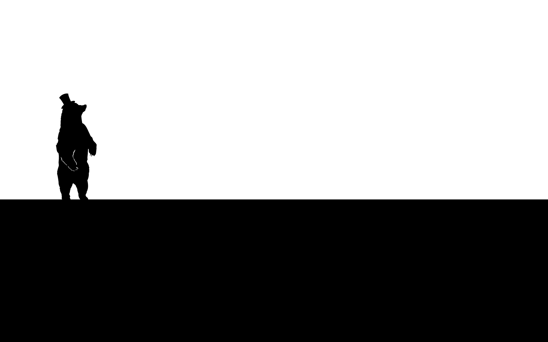 Силуэт медведя в шляпе, черно белый фон - 1920x1200