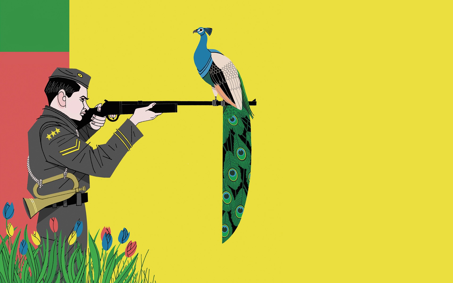 Фазан на ружье охотника, желтый фон - 1920x1200